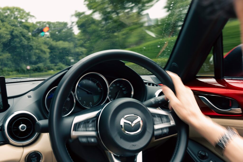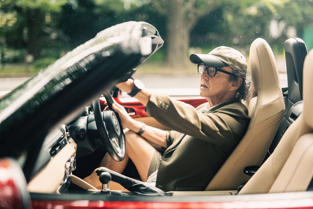 取材当日、果たして編集部は、4代目ロードスターの現行ラインナップ中もっともシンプルなグレードのソフトトップをもつ「S」の広報車を、撮影と神宮外苑周辺での短時間のお試しドライヴ用に用意してくれた。深紅のボディにベージュのキャンヴァストップ付きで、幌は運転席に座ったまま片手で、至極かんたんに開閉できる。電動開閉システムを搭載すれば車重が重くなるだけから手動のほうがいいし、だいいち余分な便利機能を付加しないという思想が根本的に正しい。