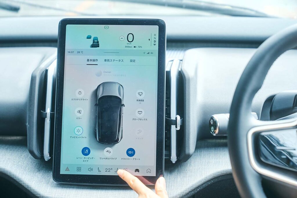サイドミラーの調整といった基本的な機能も含め、ほとんどの操作は12.3インチのセンタースクリーン上で行う。「驚きましたけど意外とふつうに扱えました」。