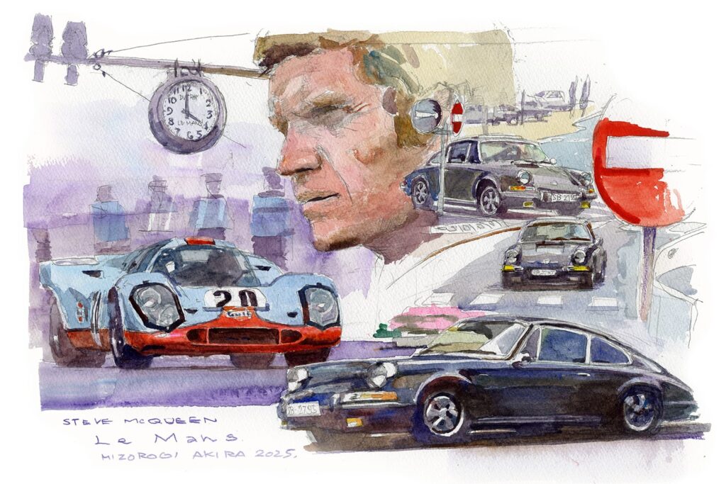 映画の冒頭、一台のポルシェ911(1970年型911S)がフランスの田舎道を静かに走って来る。運転しているのはマックィーン。映像では黒っぽく見える911Sのボディカラーはスレートグレーで、マックィーンのプライベートカーでもある。911Sは、60年代の(旧車好きなら垂涎の)シトロエンやプジョーが並ぶ石畳みを抜けて、ルマンの街に入っていく。その間、セリフもナレーションも一切ない。
