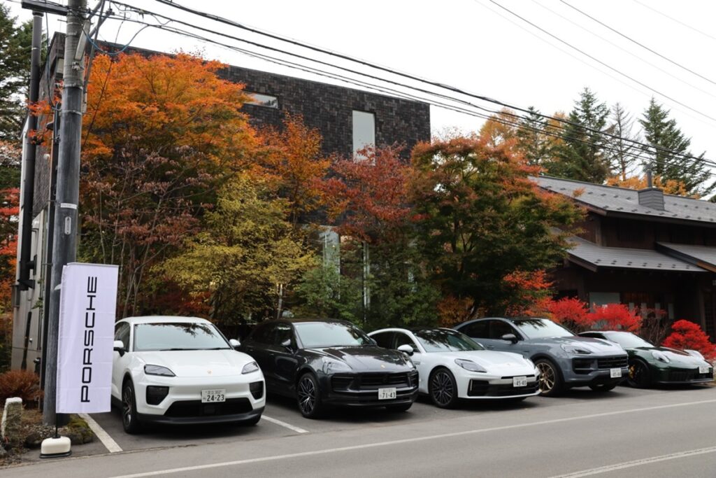 ポルシェの理解を深めてもらうこととバックアップのために、セールススタッフも別動隊として同行。最新ポルシェのオールラインアップが体感できるように、スポーツクーペ「911GTS」、オープンスポーツ「718ボクスター」、そして、日本導入されたばかりのEVのミッドサイズSUV「マカンElectric 4S」も軽井沢へと持ち込んだ。