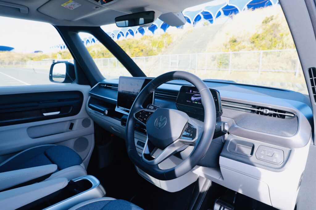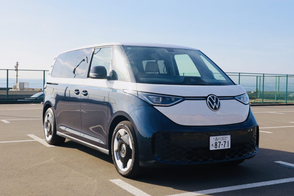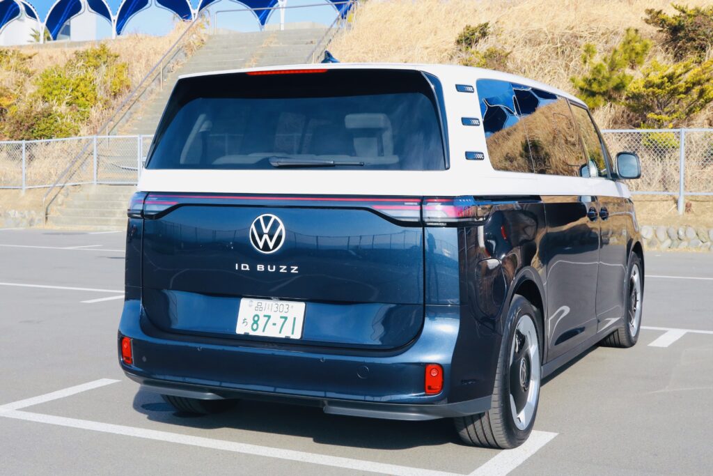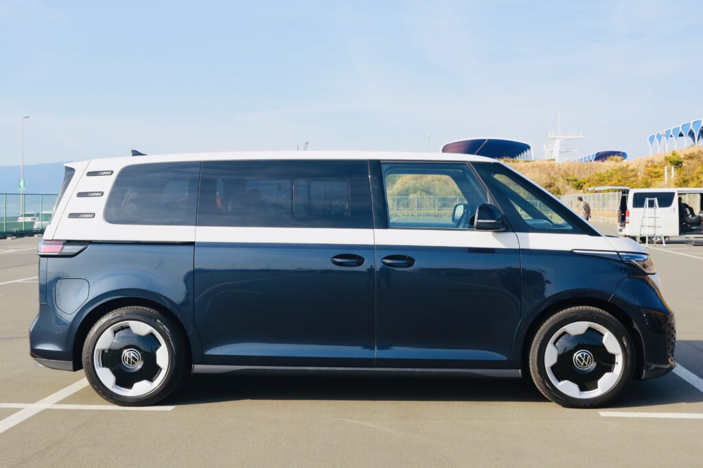 会場となった神奈川県の大磯プリンスホテル駐車場を起点に、1日で計6台に試乗したが、その中でも印象的だった一台が、フォルクスワーゲンのEVミニバン「ID. Buzz Pro」だ。ボディタイプはショートボディ(全長4715mm・6人乗り)とロングボディ(全長4960mm・7人乗り)があるが、今回試乗したのは「Long Wheelbase」のほう。
